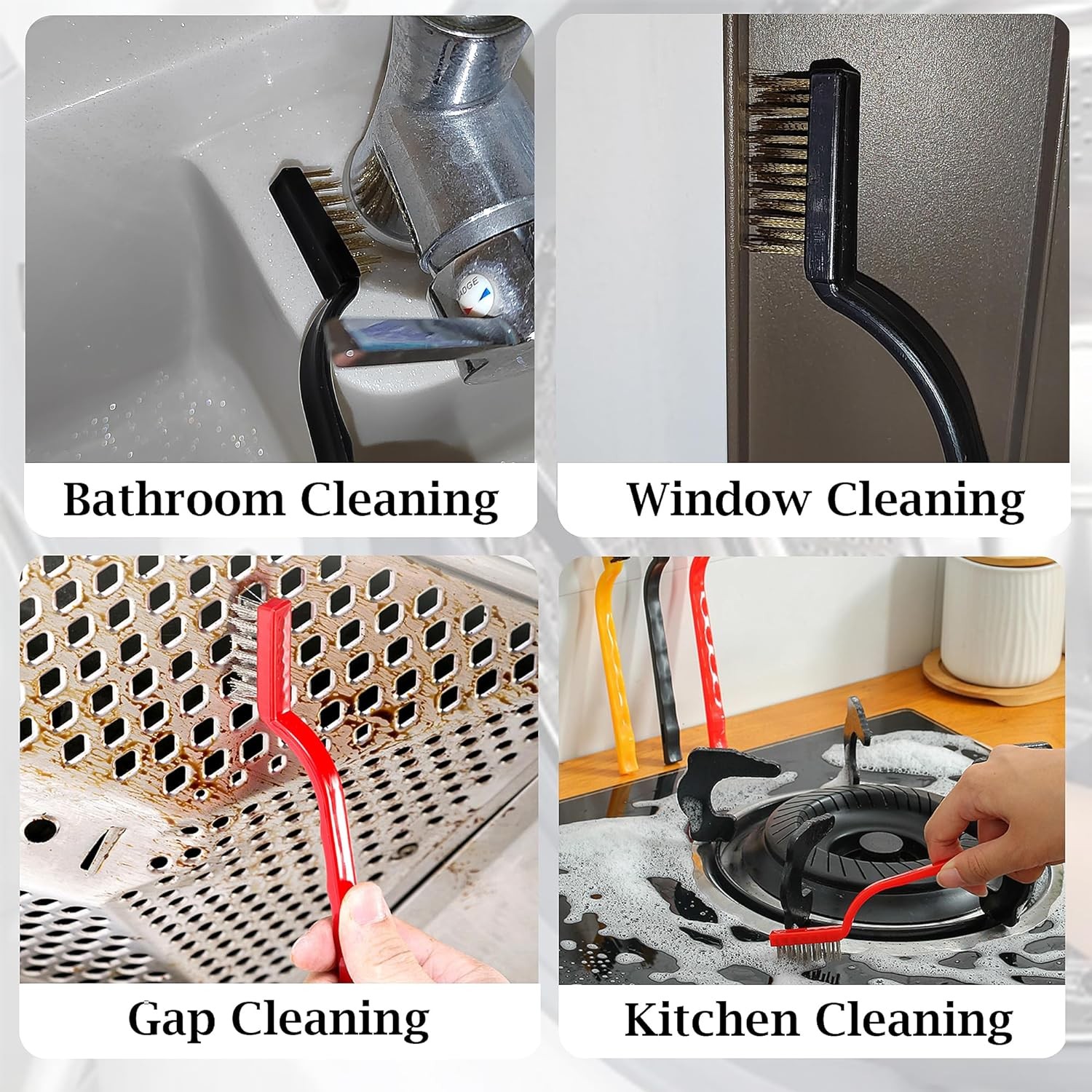 - 【Efficient Crevice Cleaning Brush】Equipped with a flat brush head, high-density hard bristles, and a 15° angle at the end, our Gap Cleaning Brush is designed for effective cleaning in crevices and hard-to-reach corners. It effortlessly reaches deep into sink edges, window seams, and other challenging spots, leaving no dirt or grime behind. Say goodbye to those stubborn stains!